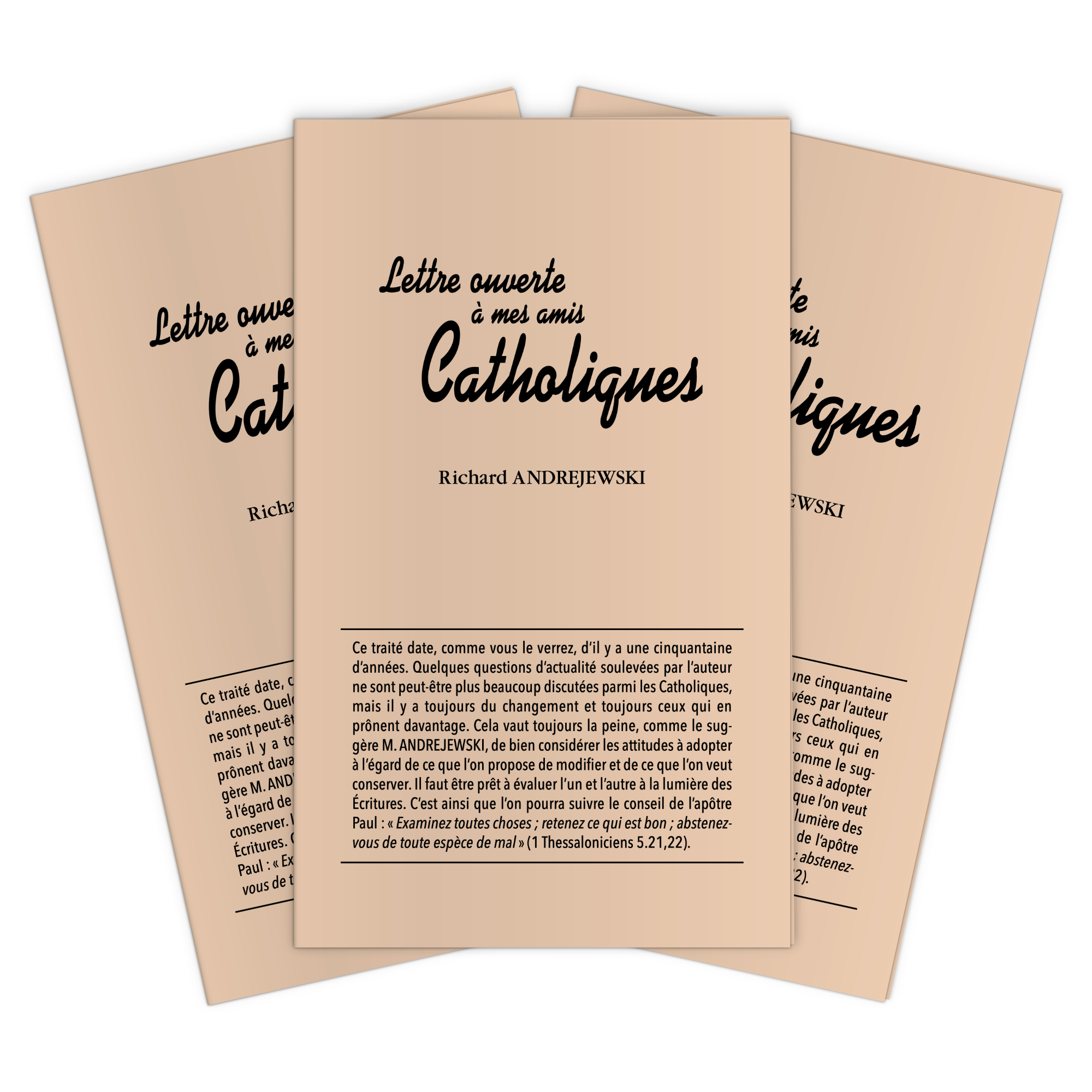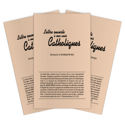 Ce traité date, comme vous le verrez, d’il y a une cinquantaine d’années. Quelques questions d’actualité soulevées par l’auteur ne sont peut-être plus beaucoup discutées parmi les Catholiques, mais il y a toujours du changement et toujours ceux qui en prônent davantage. Cela vaut toujours la peine, comme le suggère M. ANDREJEWSKI, de bien considérer les attitudes à adopter à l’égard de ce que l’on propose de modifier et de ce que l’on veut conserver. Il faut être prêt à évaluer l’un et l’autre à la lumière des Écritures. C’est ainsi que l’on pourra suivre le conseil de l’apôtre Paul : « Examinez toutes choses ; retenez ce qui est bon ; abstenez-vous de toute espèce de mal » (1 Thessaloniciens 5.21,22).