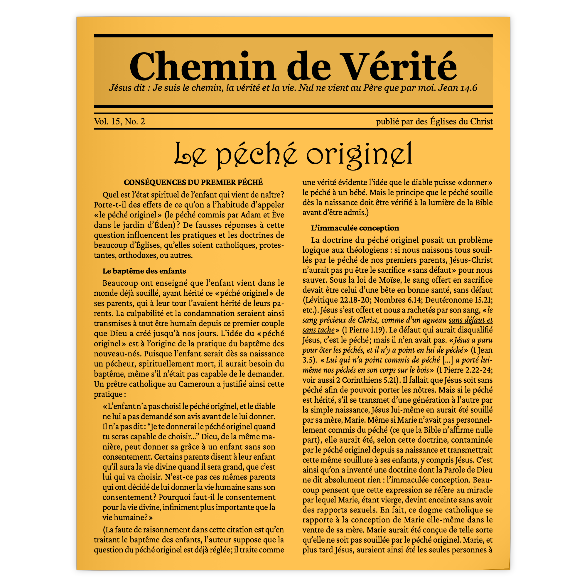 Quel est l’état spirituel de l’enfant qui vient de naître ? Porte-t-il des effets de ce qu’on a l’habitude d’appeler « le péché originel » (le péché commis par Adam et Ève dans le jardin d’Éden) ? De fausses réponses à cette question influencent les pratiques et les doctrines de beaucoup d’Églises, qu’elles soient catholiques, protestantes, orthodoxes, ou autres.