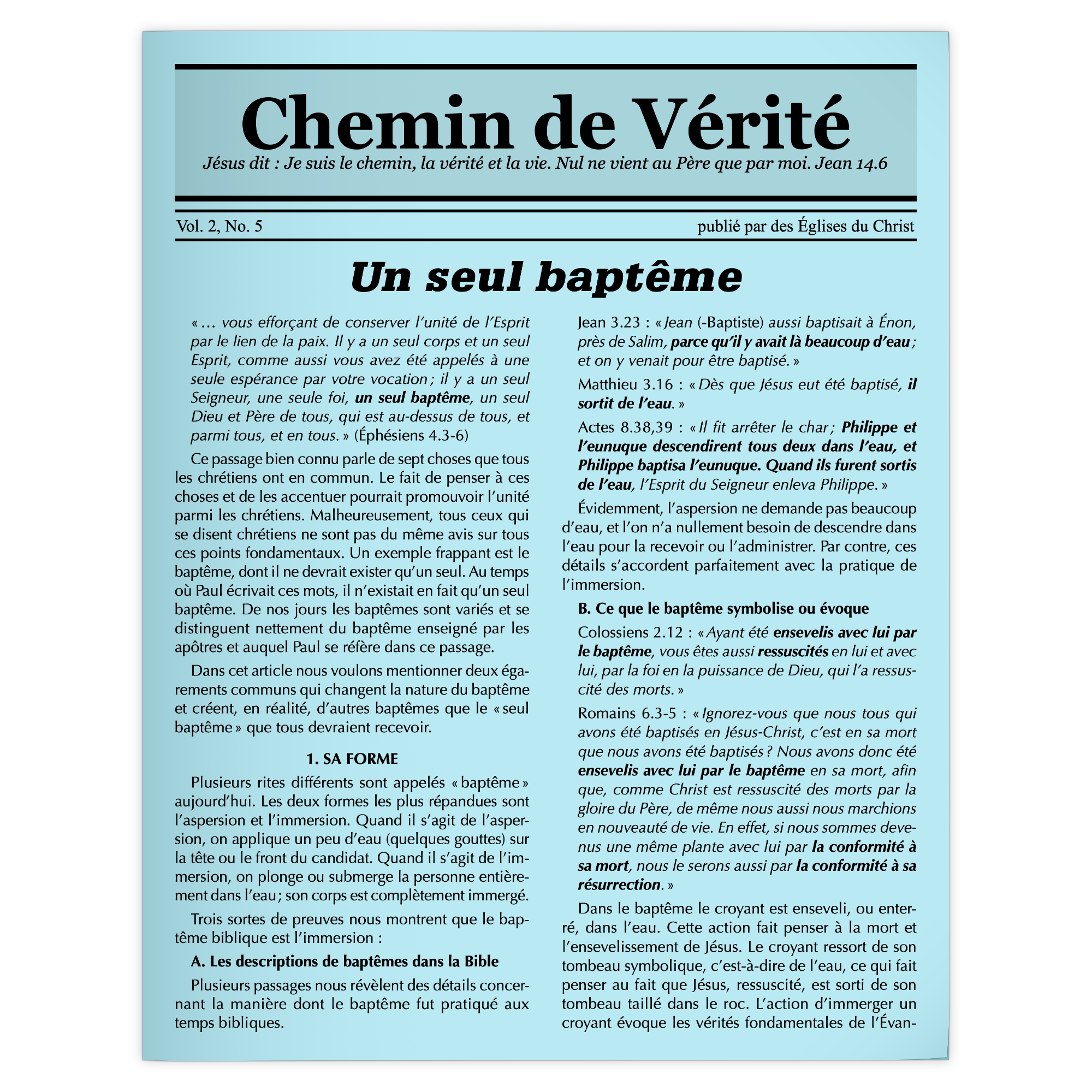 Ce passage bien connu parle de sept choses que tous les chrétiens ont en commun. Le fait de penser à ces choses et de les accentuer pourrait promouvoir l’unité parmi les chrétiens. Malheureusement, tous ceux qui se disent chrétiens ne sont pas du même avis sur tous ces points fondamentaux. Un exemple frappant est le baptême, dont il ne devrait exister qu’un seul. Au temps où Paul écrivait ces mots, il n’existait en fait qu’un seul baptême. De nos jours les baptêmes sont variés et se distinguent nettement du baptême enseigné par les apôtres et auquel Paul se réfère dans ce passage. […]