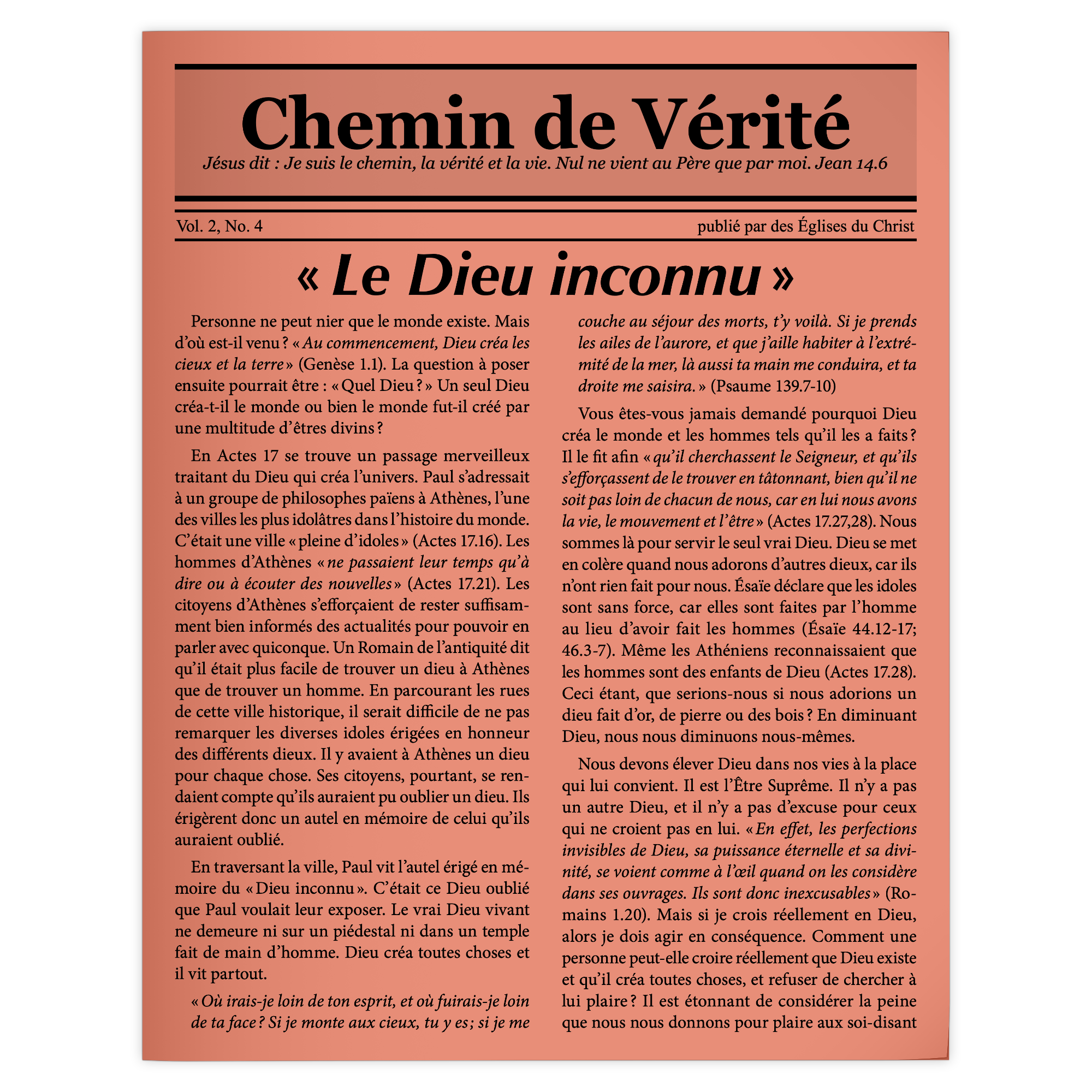 En Actes 17 se trouve un passage merveilleux traitant du Dieu qui créa l’univers. Paul s’adressait à un groupe de philosophes païens à Athènes, l’une des villes les plus idolâtres dans l’histoire du monde. C’était une ville « pleine d’idoles » (Actes 17.16). Les hommes d’Athènes « ne passaient leur temps qu’à dire ou à écouter des nouvelles » (Actes 17.21). Les citoyens d’Athènes s’efforçaient de rester suffisamment bien informés des actualités pour pouvoir en parler avec quiconque. Un Romain de l’antiquité dit qu’il était plus facile de trouver un dieu à Athènes que de trouver un homme. […]